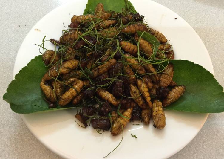 Nhộng tằm rang lá chanh