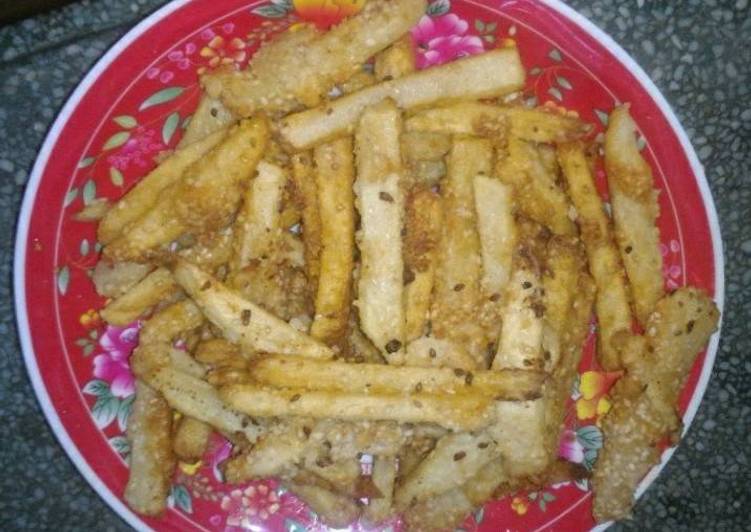 Cách Làm Khoai tây sắc nhỏ ngâm vào nước muối cho khoai tây không bị thâm, sau đó bỏ tủ lạnh ngăn đá khoảng 1 tiếng ...