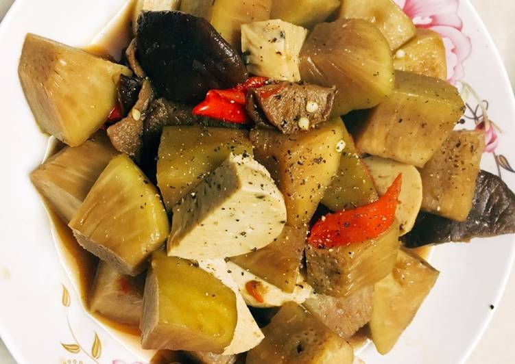 Cách Làm Sake bào vỏ, cắt vừa ăn và ngâm qua nước muối pha loãng. Nấm rơm bỏ cuống ngâm nước. ...