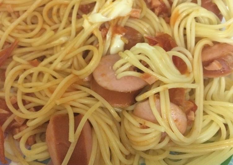 Cách Làm Thái xúc xích thành các đoạn khoảng 1cm (nếu thừa xúc xích thì băm nhỏ để dùng cùng nước sốt_vì là suất 1 người ...