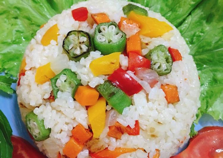 Cách Làm Tấc cả cắt hạt lựu, tỏi dã dập. Cà rốt và đậu bắp luộc trước cho chín tới ...