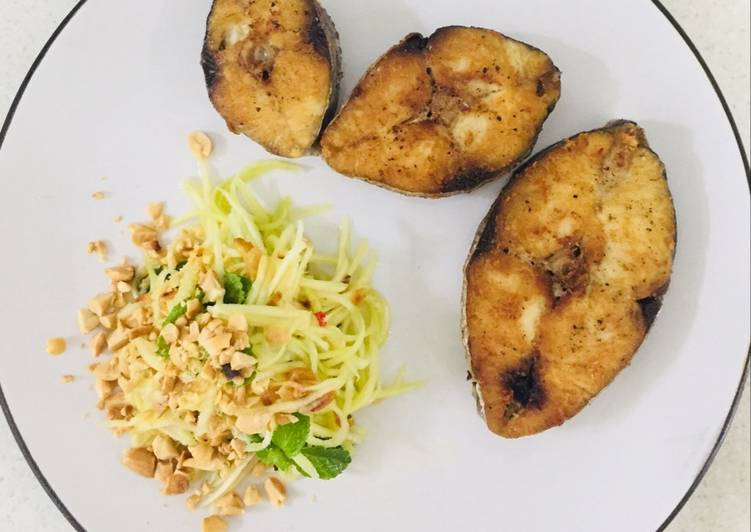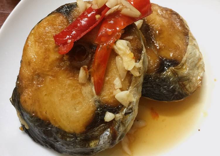 Cách Làm Cá thu thấm khô, chiên vàng ở lửa nhỏ cho cá chín và chắc, khi nào được thì tăng lửa to ...