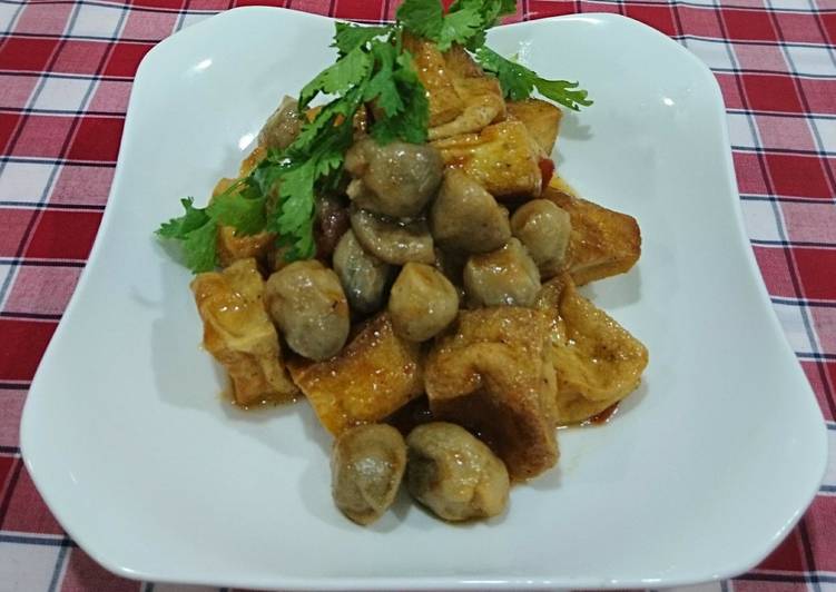 Cách Làm Đậu hũ cắt miếng vuông nhỏ chiên vàng. ...