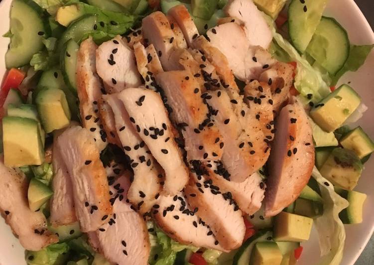 Salad rau quả trộn dầu dấm và ức gà áp chảo