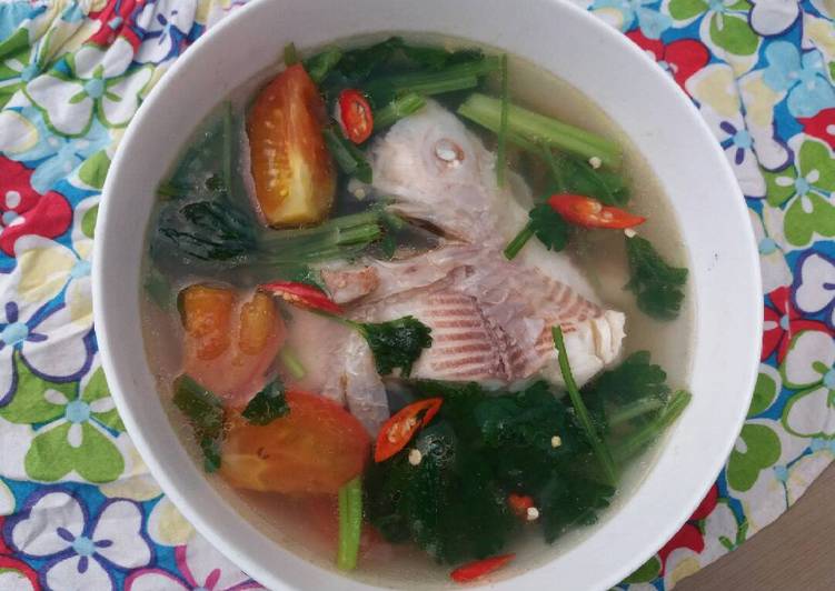 Cách Làm Cá làm sạch cắt khúc làm 2. Cà chua cắt múi cam. Cần ta và hành lá cắt khúc ...
