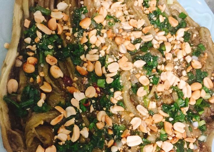 Cách Làm Cà tím rửa sạch cho vào lò nướng 200 độ lửa trên, khoảng 30 phut cho đến khi cà chín, (nướng 15 phút trở mặt kia ...