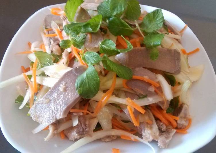 Cách Làm Lưỡi heo rửa sạch. Đun nước nóng thả lưỡi heo vào trần sơ. Sau đó bỏ ra cạo sạch màng trắng ở xung quanh lưỡi. ...