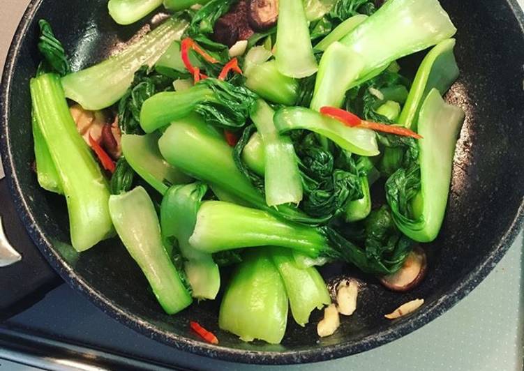 Cách Làm Cải chíp, ớt sừng, tách bẹ cắt cuống, rửa sạch. Ớt sừng cắt đôi bỏ hạt rồi thái sợi chỉ. Tỏi đập dập. Nấm hương ...