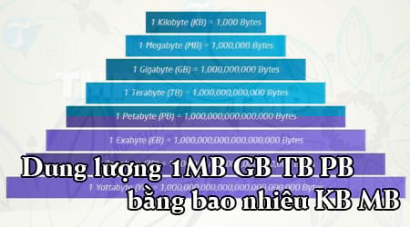 Dung lượng 1MB GB TB PB bằng bao nhiêu KB MB