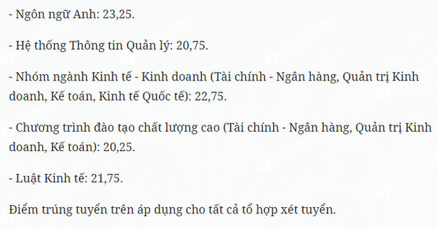 Điểm chuẩn Đại học Ngân Hàng TPHCM năm 2017, điểm xét tuyển