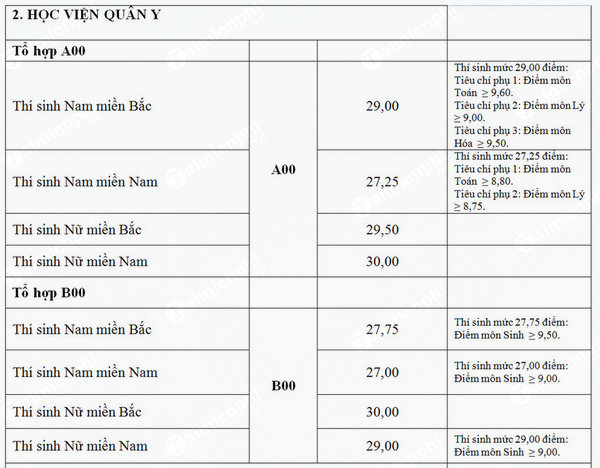 Khi tiến hành tra cứu điểm xét tuyển Học Viện Quân Y- Hệ Quân sự các thí sinh cần lưu ý số điểm đối với từng đối tượng cũng như khu vực có sự chênh lệch từ 0,5 ...
