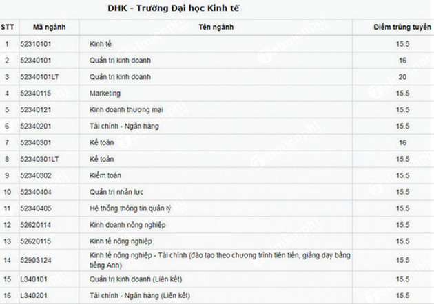 Điểm chuẩn Đại học kinh tế - Đại học Huế 2017, điểm xét tuyển
