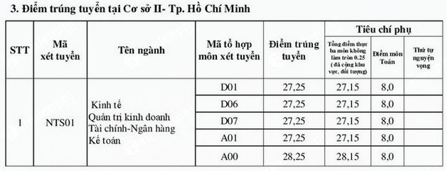 Điểm chuẩn Đại học Ngoại thương cơ sở 2, phía Nam 2017