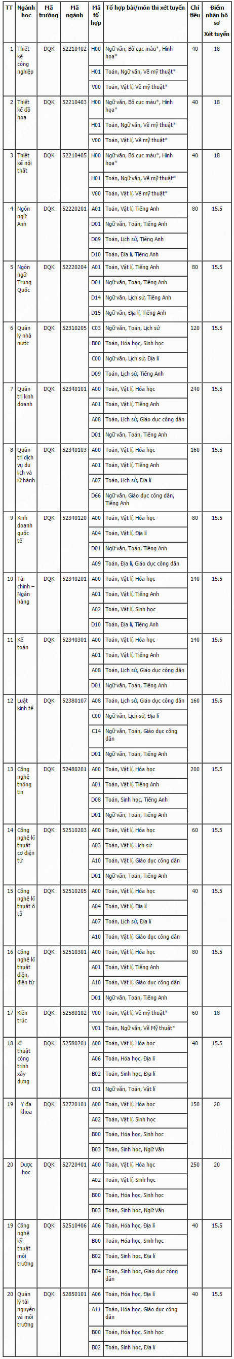 Điểm chuẩn Đại học Quy Nhơn 2017, điểm xét tuyển