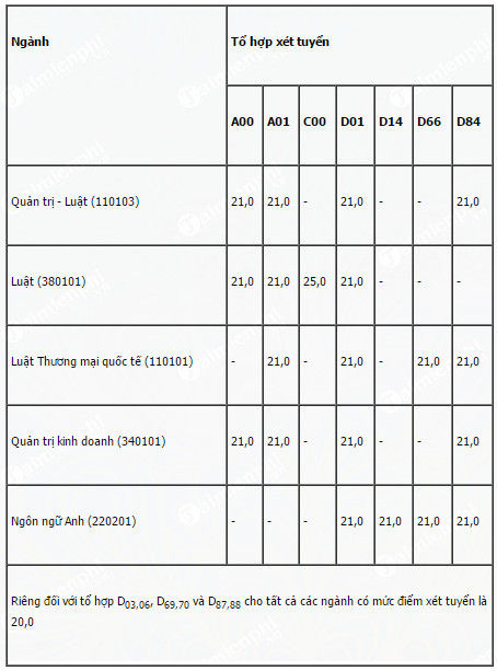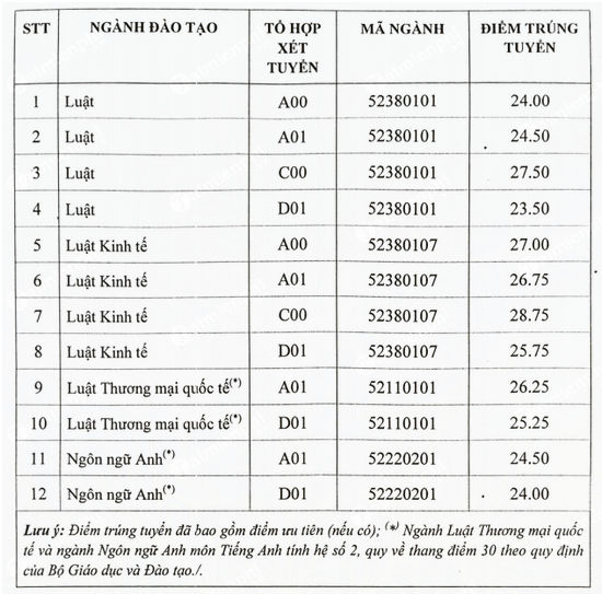 Điểm chuẩn Đại học Luật Hà Nội 2017, điểm xét tuyển