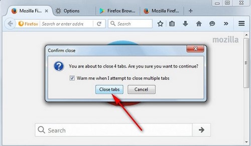 Tạo cảnh báo đóng nhiều tab trên trình duyệt web Firefox