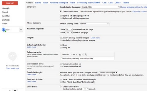 Thay đổi ngôn ngữ trong Gmail