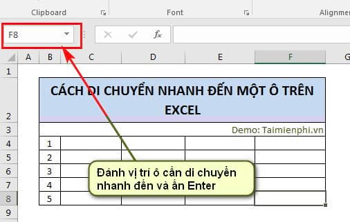 Bài viết liên quan Để di chuyển nhanh đến một ô trên Excel, bạn có thể đánh tên ô lên phần Name Box bên cạnh thanh công thức và nhấn Enter , lập tức con trỏ sẽ ...