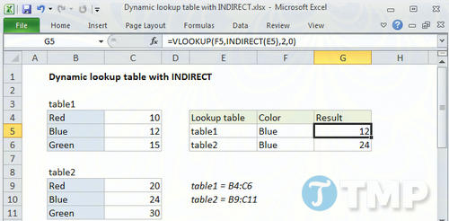Sử dụng hàm INDIRECT để tham chiếu tới các vùng dữ liệu đã đặt tên