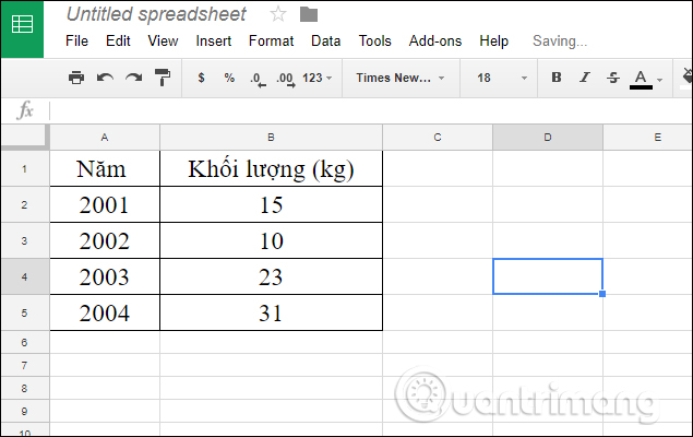 Cách tạo đồ thị, biểu đồ trong Google Sheets