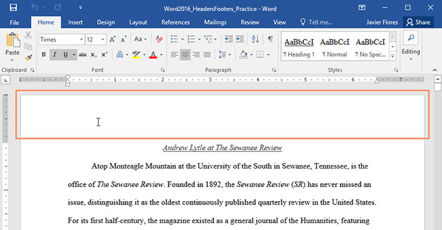 Hướng dẫn toàn tập Word 2016 (Phần 14): Tiêu đề trang (Header) và chân trang (Footer)