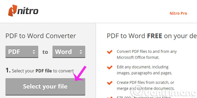 Có rất nhiều công cụ trực tuyến khác nhau để chuyển PDF sang Word nhưng hôm nay, chúng tôi sẽ giới thiệu với các bạn công cụ của Nitro, hoàn toàn miễn phí mà cũng rất dễ sử dụng. Mời các bạn tham khảo. Lưu ý : File chuyển đổi sẽ là Docx và bạn cần cài Word 2007 trở lên để mở Bước 1: ...