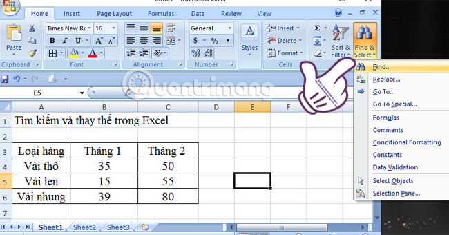 Hướng dẫn tìm kiếm và thay thế trong bảng Excel