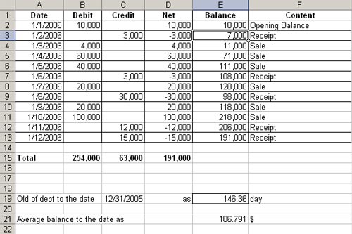 Hàm Excel tính tuổi nợ và số dư bình quân