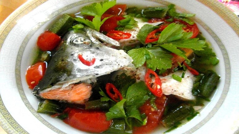 Hấp dẫn thơm ngon với món canh chua đầu cá hồi tròn vị