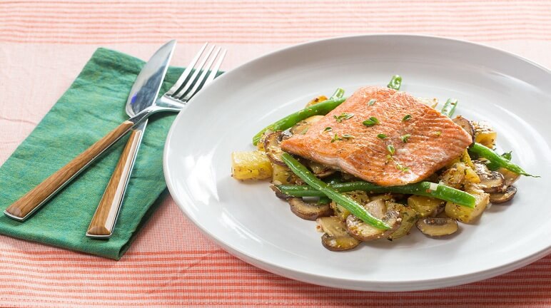 Mê mẩn với món cá hồi xào đậu nấm thơm ngon nóng hổi