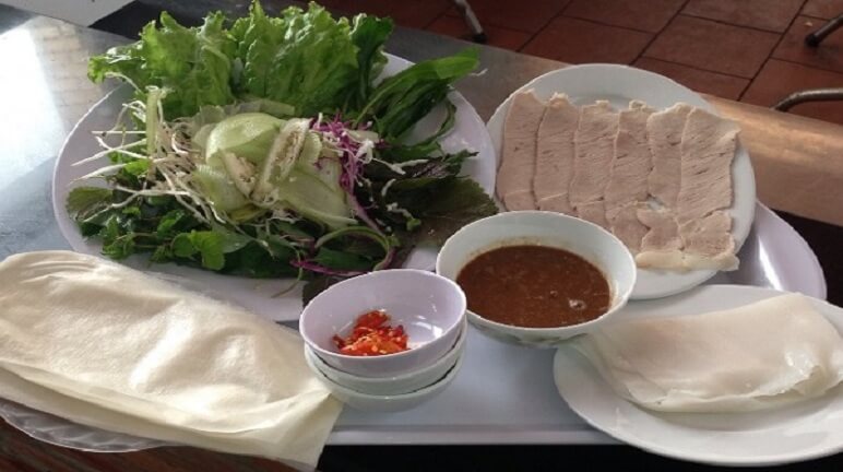 Loại bánh trang phơi sương này thường được dùng để cuốn với thịt heo luộc cùng với các loại rau. Rau cuốn bánh phải đủ ngũ vị: chát, béo, thơm, ngọt, chua. Đó là rau diếp cá, lá cóc, lá săng mào, lá bứa, tía tô, lá hẹ, húng lủi, cần nước, lá mặt trăng, lá tràm ổi, húng quế, lá săng dẻ, quế vị, ngò ...